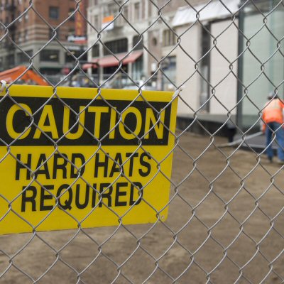 Security Fence Company offers temporary fencing - construction fences for construction sites and other locations requiring temporary barriers. They feature welded galvanized framework, with tension bands and tension bars designed to hold galvanized fabric tight to framework. Fabric is tied to framework with 9 gauge aluminum ties. Sturdy panel stands are included with temporary fences.